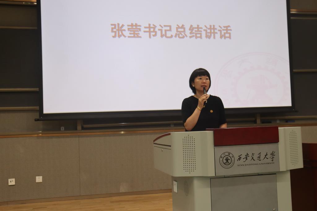 张莹书记在总结讲话中鼓励同学们面对挫折时保持乐观心态,要注重全面发展,新起点树立新目标,奋勇争先传承西迁精神,争做“创新、坚韧、包容、诚信”的新时代有为青年。