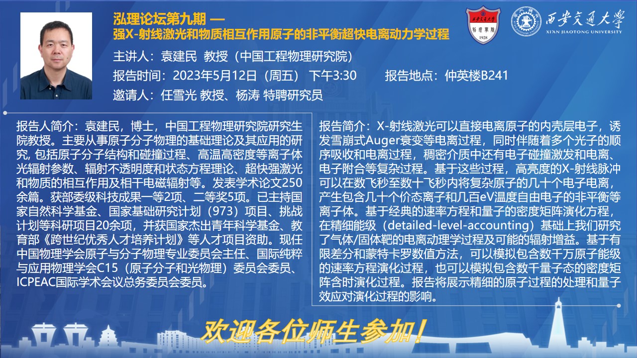 【泓理论坛】第九期——强X-射线激光和物质相互作用原子的非平衡超快电离动力学过程