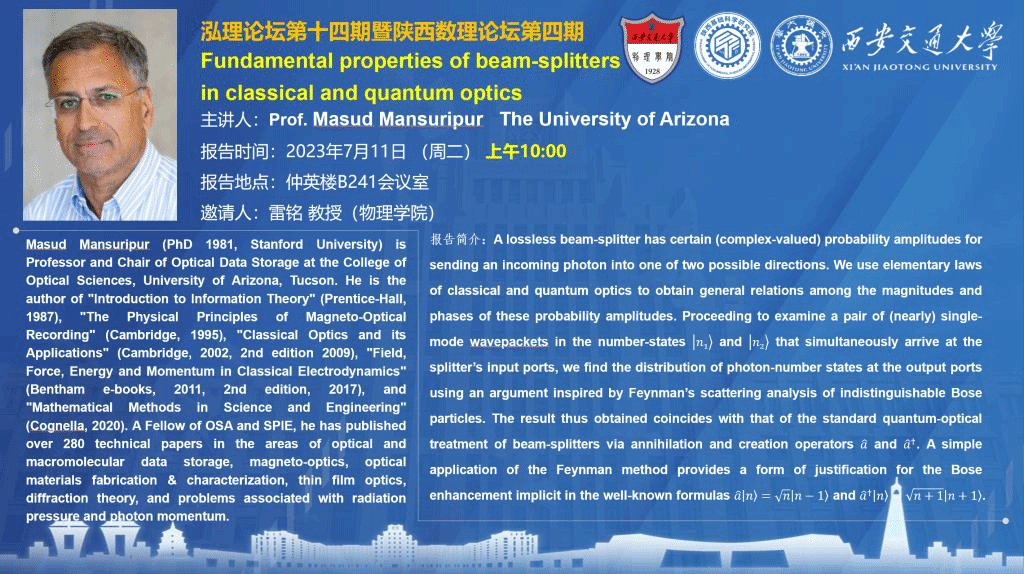【泓理论坛第十四期暨陕西数理论坛第四期】——Fundamental properties of beam-splitters in classical and quantum optics