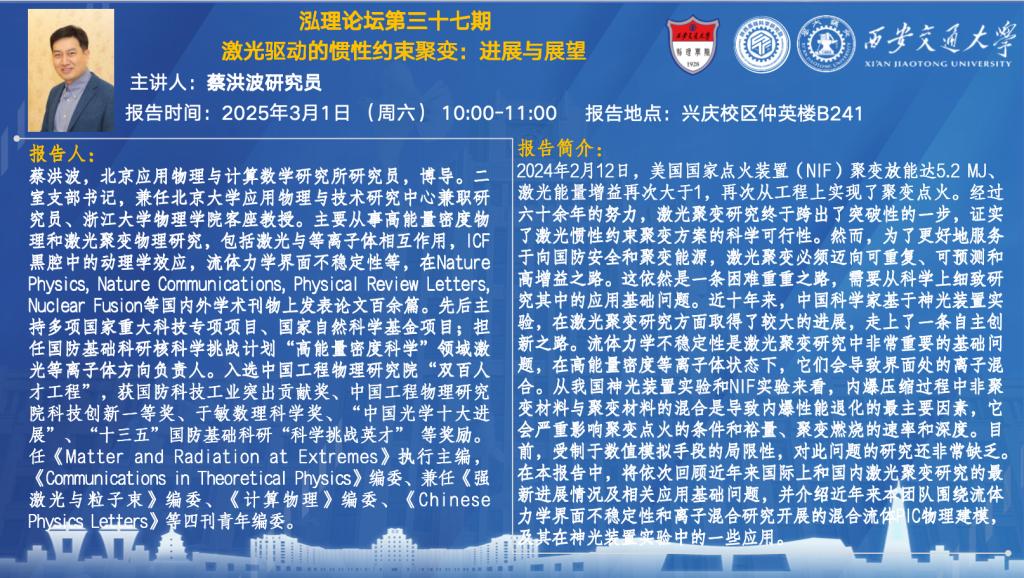 【泓理论坛第三十七期】——激光驱动的惯性约束聚变:进展与展望