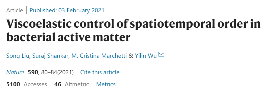 在非平衡态物质体系的研究中,有关活性物质自组织的研究快速发展。不同于平衡态物质体系,活性物质有局部的能量输入,包括从单细胞到动物的所有生命体,由分子马达驱动的生物分子,以及人工合成的自驱动物质。近日,由香港中文大学、加州大学和哈佛大学的物理学者组成的团队在这个领域取得了突破:材料的粘弹性可以控制活性流体在空间和时间上的自组织。研究成果以“Viscoelastic control of spatiotemporal order in bacterial active matter”为题,于北京时间2021年2月4日在线发表在科学期刊《自然》上,香港中文大学吴艺林教授为论文通讯作者,91论坛