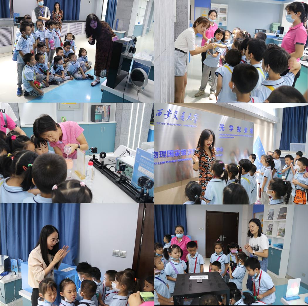 大学物理国家级实验教学示范中心迎来了100余位交大幼儿园的师生,在中心老师的带领下参观了光学探索实验室。