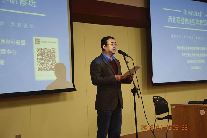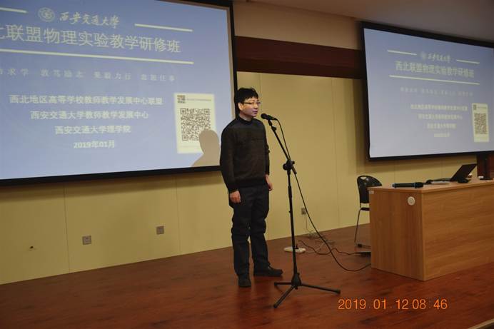 2019年1月12日上午,西北地区高等学校教师教学发展中心联盟物理实验教学研修班在仲英楼B102举行了隆重的开班仪式。本次研修班受中国高校实验物理教学研究会、国家级实验教学示范中心联席会物理学科组委托,由91论坛