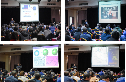 在接下来的环节中,陕西师范大学房喻教授作了题为“荧光分子结构的非平面化及其在有害物质气相探测中的应用”的报告、加拿大皇后大学的Guojun Liu教授作了题为“Nanostructured Polymer Materials for Applications”的报告、清华大学杨振忠教授作了题为“Janus复合功能体系”的报告、香港理工大学Wai-Yeung Wong教授作了题为“Multifunctional Metallopolyynes: Synthesis, Functions and Applications”的报告、美国宾州州立大学Qing Wang教授作了题为“Ferroelectric Polymers and