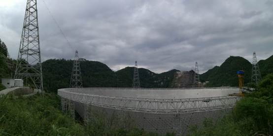 FAST简介:500米口径球面射电望远镜作为国家重大科技基础设施,“天眼”工程由主动反射面系统、馈源支撑系统、测量与控制系统、接收机与终端及观测基地等几大部分构成。主动反射面是由上万根钢索和4450个反射单元组成的球冠型索膜结构,其外形像一口巨大的锅,接收面积相当于30个标准足球场。利用天然的 喀斯特洼坑作为台址,洼坑内铺设数千块单元组成冠状主动反射面,采用轻型索拖动机构和并联 机器人实现接收机高精度定位,这是中国‘天眼’的三大自主创新。”