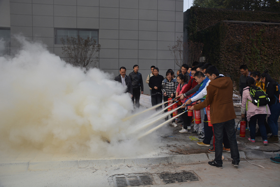 随后,公安处负责人为大家演示灭火器的使用方法以及在实际中对于不同的起火原因应如何应对处理,之后由学生及老师进行实际灭火操作。