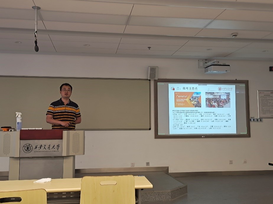 化学学院博士毕业生顾俞睿结合自己经历分析了历年来选调生政策的调整,包括选调生的历史使命、各省市的选调生招录政策、面向我校定向招录的省市等,让大家对于选调生有一个更加全面且深入的了解。此外,他还分析了各省市的选调生考试情况,包括笔试、面试和政审,鼓励有意愿报考选调生的同学早做准备,并给大家提供了备考建议,同学们纷纷表示受益匪浅。