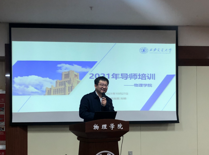 在仲英楼组织开展研究生导师培训工作,邀请研究生院副院长刘明教授讲授研究生培养质量管理相关政策,学院全体在校研究生导师参加培训,学位办副主任徐渭、学位办贾丽萍受邀参加,培训会由院长助理穆廷魁主持。