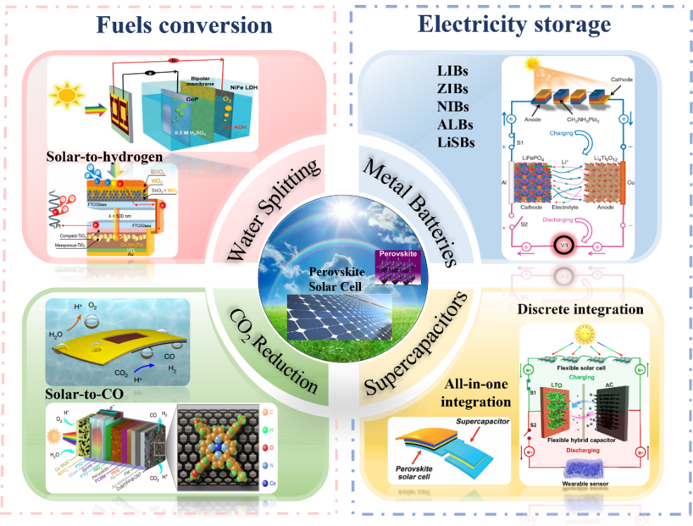 的梁超研究员、杨生春教授与澳门大学的邢贵川教授合作,系统总结了钙钛矿太阳能电池驱动的电化学燃料转换、电催化还原和电能存储系统的集成于发展现状。重点介绍了基于钙钛矿太阳能电池的新兴光电化学器件开发,包括自充电电池组、无辅助太阳能水裂解/CO2还原等领域的研究进展,并对该领域所面临的科学挑战进行了分析和展望。上述工作近日分别以(Perovskite Solar Cell Powered Integrated Fuel Conversion and Energy Storage Devices)和(Recent Progress in Perovskite-Based Reversible Photon–Electricity Conversion Devices)为题分别发表在国际知名期刊Advanced Materials和Advanced Functional Materials。论文第一作者为91论坛