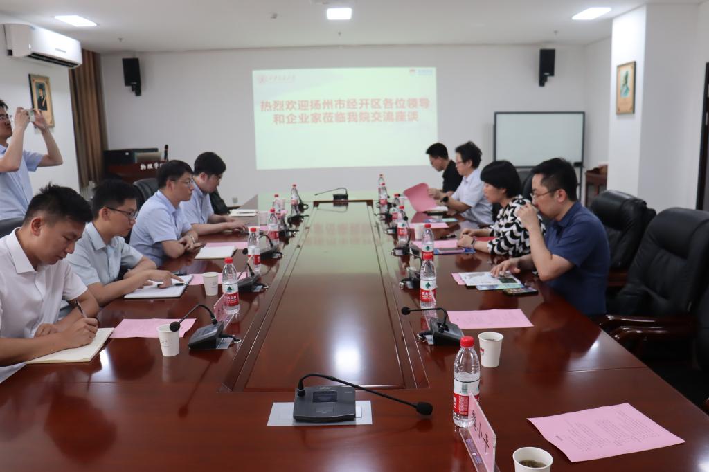 赴扬州经开区挂职干部在发言中谈了挂职以来的心得体会,介绍经开区的建设情况,建议进一步深入持续交流,在科技创新、成果转化、学生社会实践、就业创业等方面加强合作。