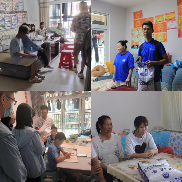 拍摄之余,队员们还深入 “易搬”社区,慰问社区中需要帮助的人,为他们送去大米;去到学生家庭里,关心孩子,了解孩子们的情况。