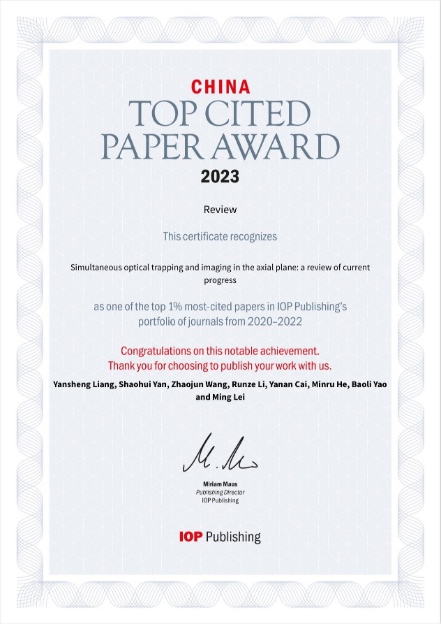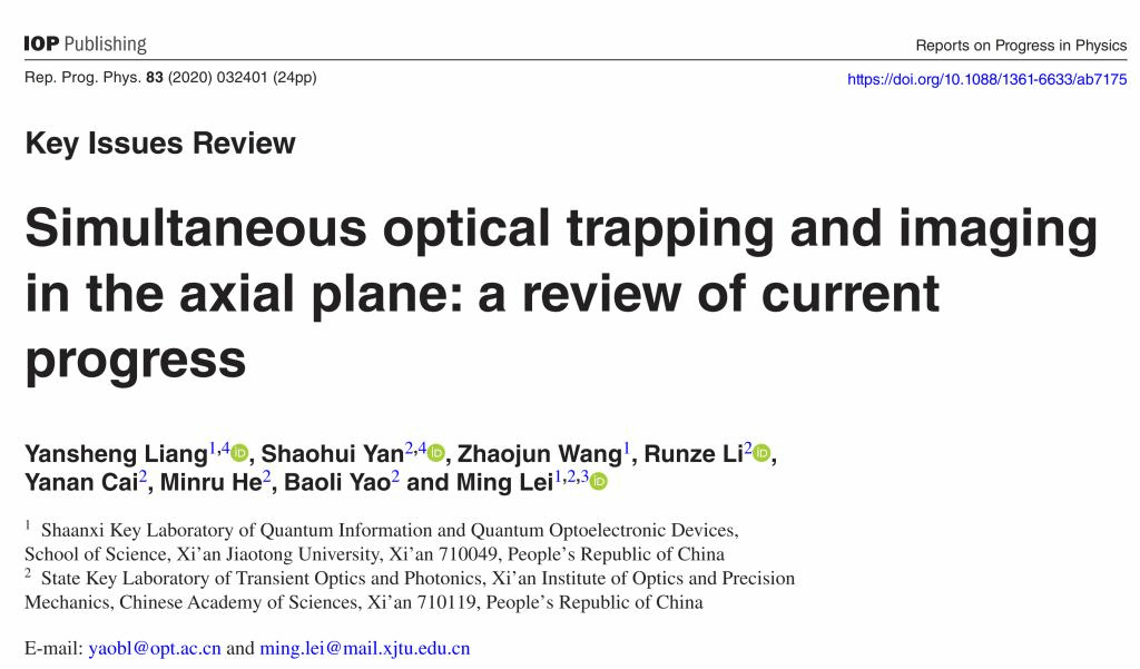 雷铭教授团队在Reports on Progress in Physics(IF=18.1)的综述论文“轴平面同时光学捕获与成像”(Simultaneous optical trapping and imaging in the axial plane: a review of current progress)获得IOP Publishing的前1%高被引荣誉。91论坛