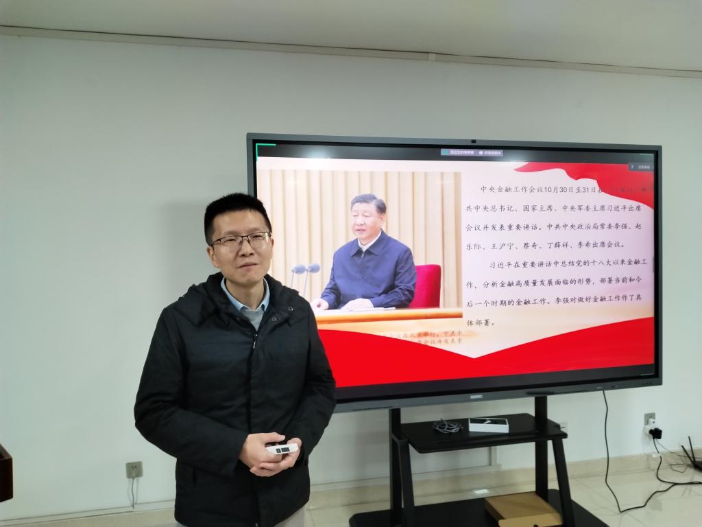 侯晓辉教授从中央金融工作会议的召开背景、会议内容、重要内涵与重大意义等方面深入解读中央金融工作会议精神,着重学习习近平总书记在中央金融工作会议上的重要讲话精神。习近平总书记在重要讲话中深刻总结党的十八大以来金融工作,分析金融高质量发展面临的形势,部署当前和今后一个时期的金融工作,为金融工作指明了方向、提供根本遵循。他指出,此次中央金融工作会议时机特殊、意义重大,在我国金融发展史上具有重要的里程碑意义。他强调要以高点站位、全局观念和创新思维深入学习贯彻落实中央金融工作会议精神,切实把思想和行动统一到习近平总书记重要讲话精神和党中央决策部署上来。