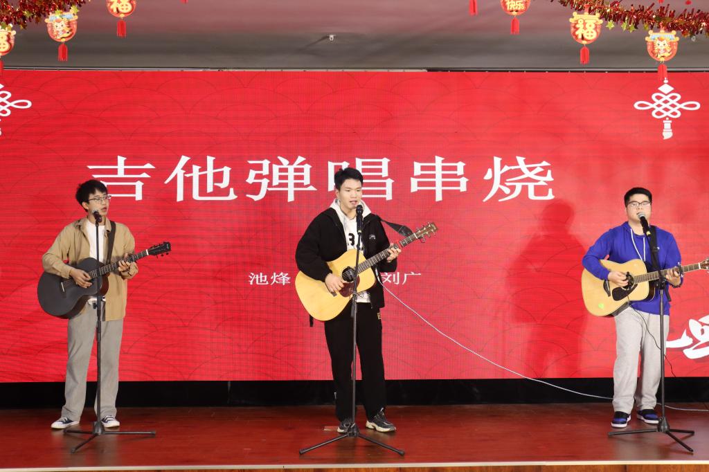 精彩的开场舞《UNFORGIVEN》拉开了迎新晚会的帷幕燃爆全场,接下来是学院党政领导朗诵《2023辞旧迎新》,回首2023年学院取得的各项成果,迎接充满无限可能的2024年。励志书院夏笑武老师演唱歌曲《七里香》极具感染力,充满浓郁的东方韵味给观众带来共鸣。由学院院办老师、研究生代表带来的诗朗诵《我们的这一年》,以诙谐幽默的方式引得大家多次大笑。白一鸣、董立桢、杨奕姝三位同学边唱边合奏《背对背拥抱》非常唯美。四首单曲《我会等》、《不要说话》、《Waving Through a Window》、《梦一场》歌曲优美动听。