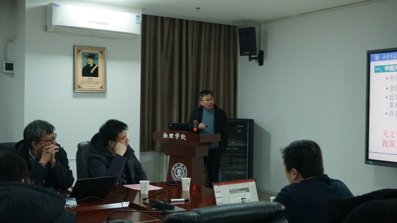 在兴庆校区召开天文方向发展研讨会,会议邀请电信学部刘海文教授共同研讨。党委书记张莹、院长高宏,学院相关系所负责人及天文学科方向的相关教师二十余人参加研讨,会议由杨志懋副院长主持。