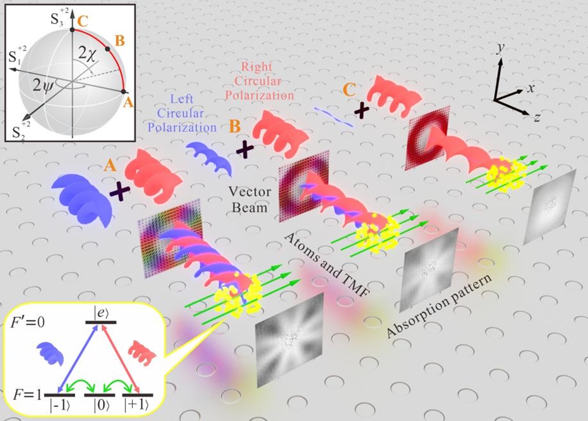 矢量结构光场与冷原子介质相互作用示意图