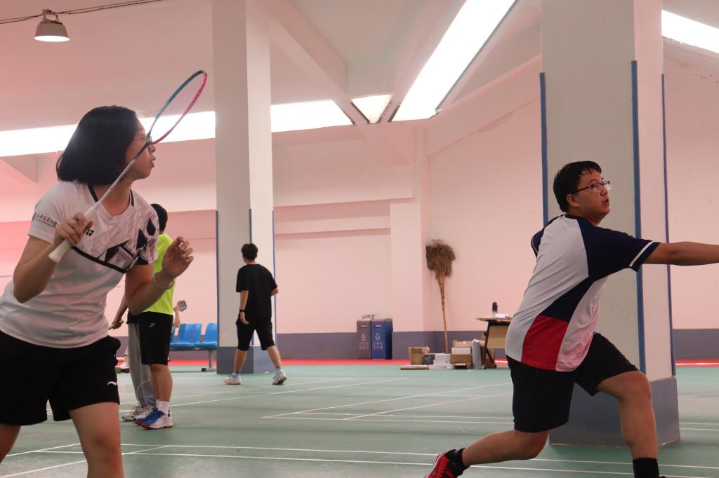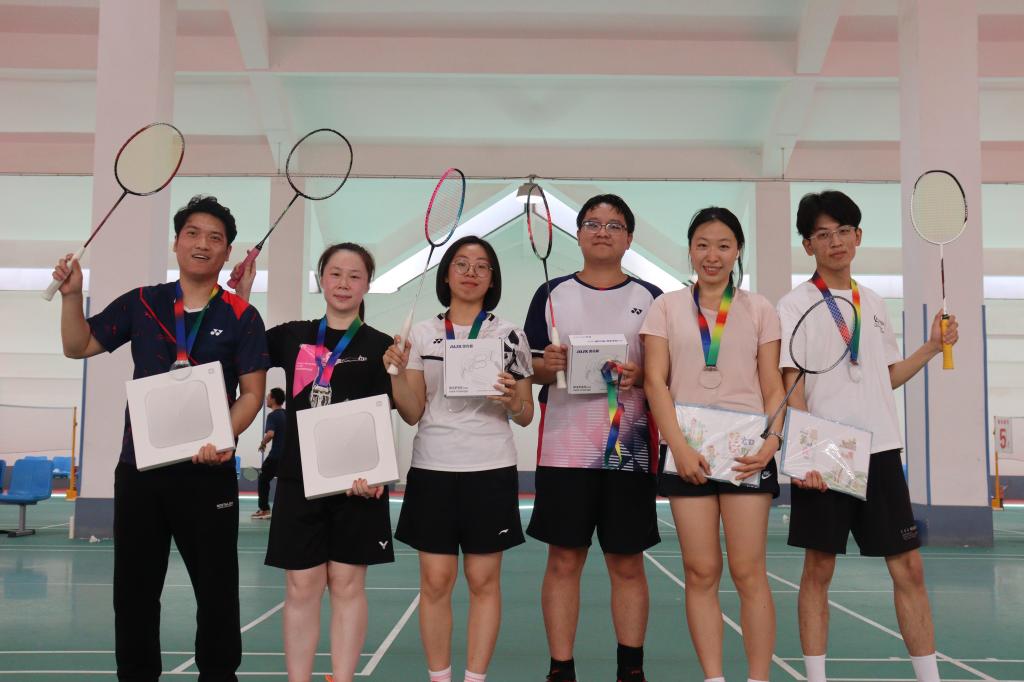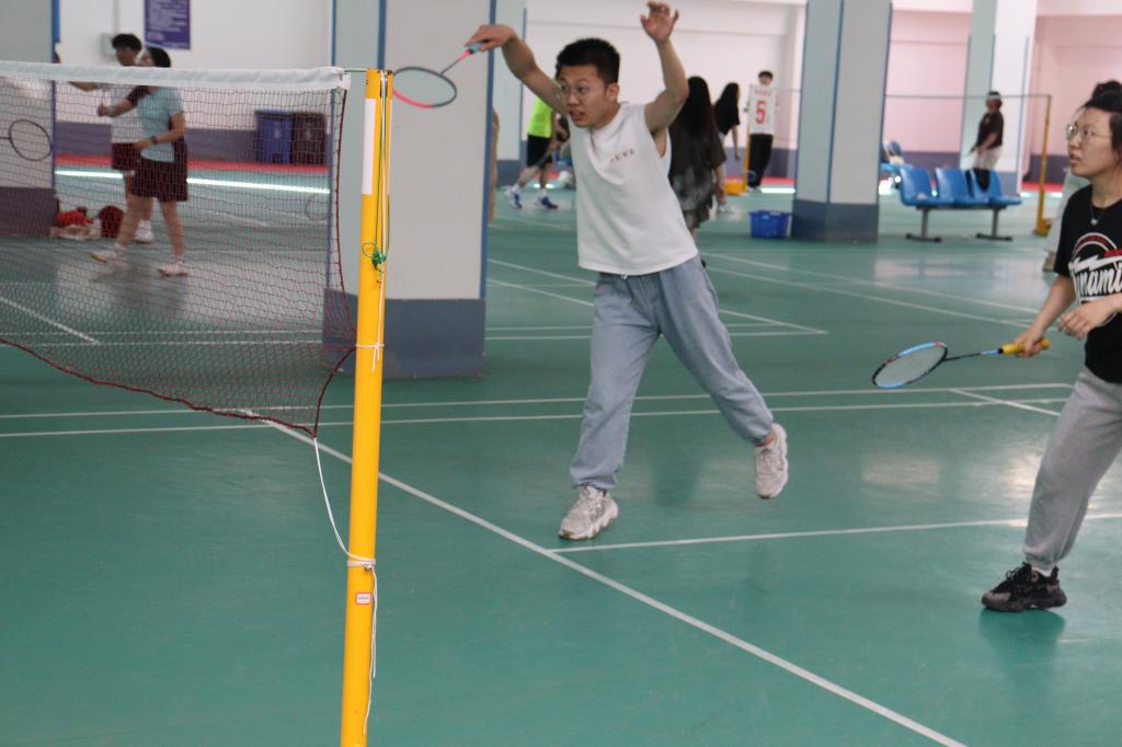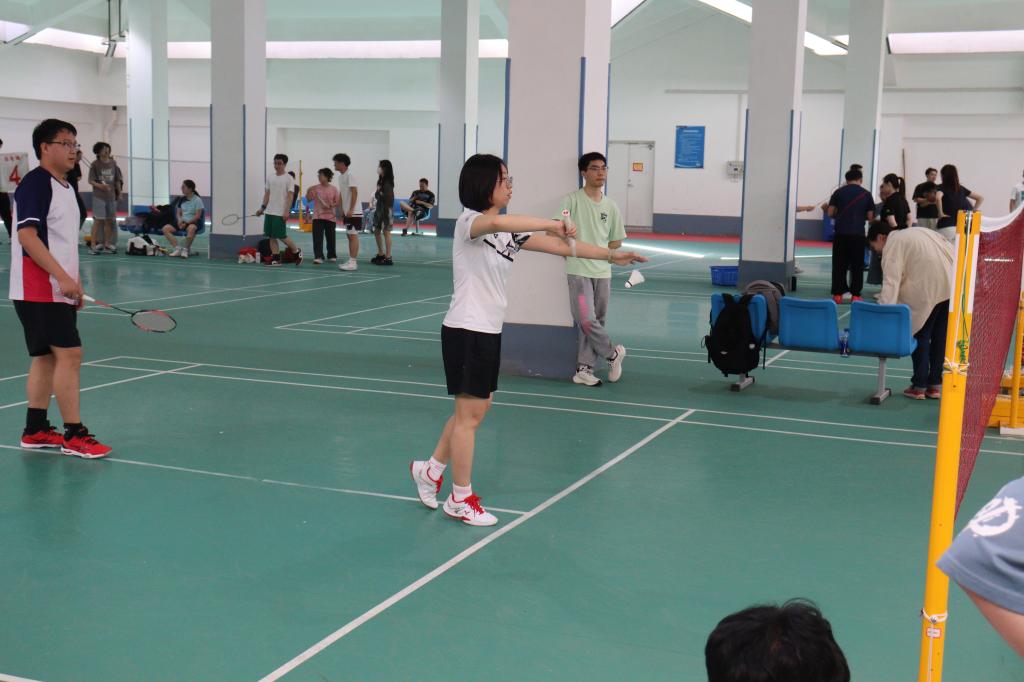 、新闻与新媒体学院、未来技术学院联合举办“良师益友,‘羽’你同行”三院联合师生羽毛球赛。比赛于2024年5月12日在创新港校区2号巨构坡屋顶羽毛球场进行,分为混双、男单和女单三个项目,共吸引63名羽毛球爱好者报名参与。