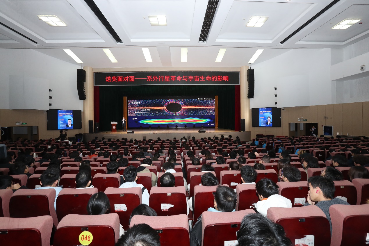 迪迪埃·奎洛兹教授分享了研究团队在系外行星探测中的研究方法和研究成果,对宇宙中生命多样性的话题进行了哲学和科学探讨,激发了广大师生对地外生命可能性的科学思考。会场座无虚席,气氛热烈,师生们踊跃提问,交流互动,迪迪埃·奎洛兹教授耐心细致解答,热忱鼓励师生善于观察和思考,勇于探索未知世界的奥秘。