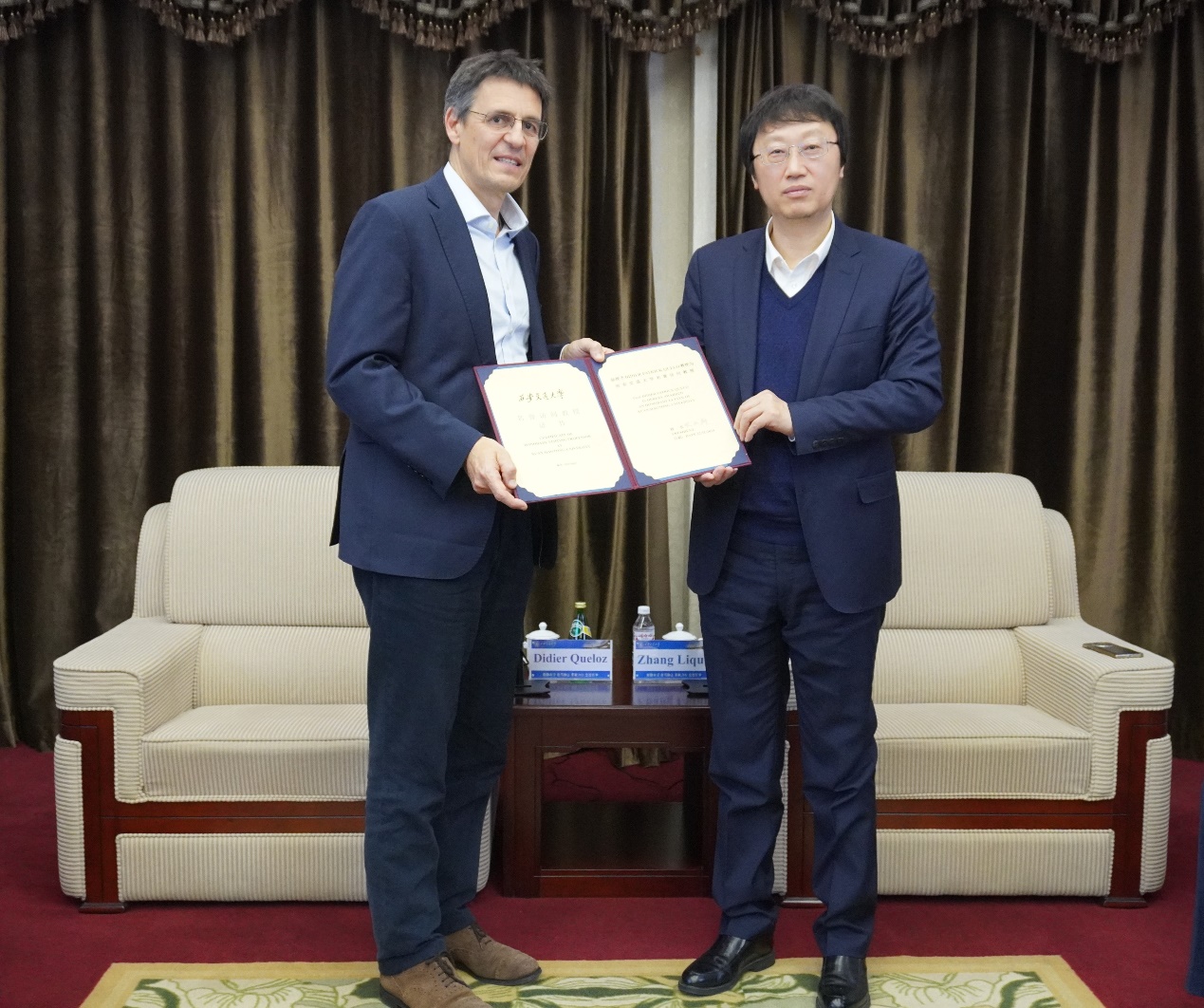 张立群为迪迪埃·奎洛兹颁发“珠峰计划”荣誉访问教授证书。