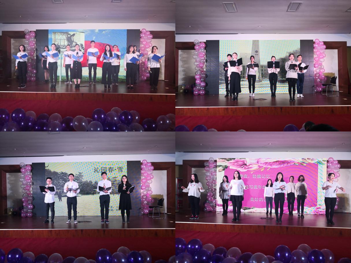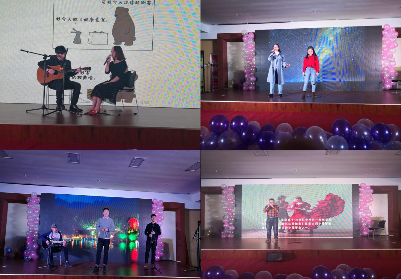 晚会节目精彩纷呈,会场充满了欢声笑语。《往后余生》悠悠地唱出了爱情的样子,《当你老了》缓缓地道出陪伴的意义,《勇气》歌曲舒缓而有力,《逆光》唱出了的永不言弃的决心,《光年之外》的双人对唱优美动人,而《最美的期待》则激励着我们勇敢追梦。刘博奥同学的一曲《查尔达什舞曲》的口琴独奏,不仅让我们感受到异国风情,更是领略到了口琴的魅力。来自硕8084班的合唱曲目《爱因为在心中》和硕8083班的合唱曲目《我们一起走过》向我们展示了两个团结友爱的集体。手语舞蹈《感恩的心》安静地传达着无声的力量。杨欣玥老师带来舞蹈《孤独探戈》,舞扇飞扬,似无数花瓣飘飘荡荡凌空而下,令人陶醉。小品《我相信》将晚会推向了高潮,通过舞蹈、朗诵、魔术等形式的演绎,博得满堂喝彩和热烈掌声。从硕8084的诗朗诵《沁园春·雪&相信未来》到硕8083党支部的诗朗诵《盛世中国》,向我们描绘了这一路走来我们祖国的巨大变革。风好正扬帆,今朝再启航。不忘初心四十年,我们的祖国用改革开放创造伟大功业。