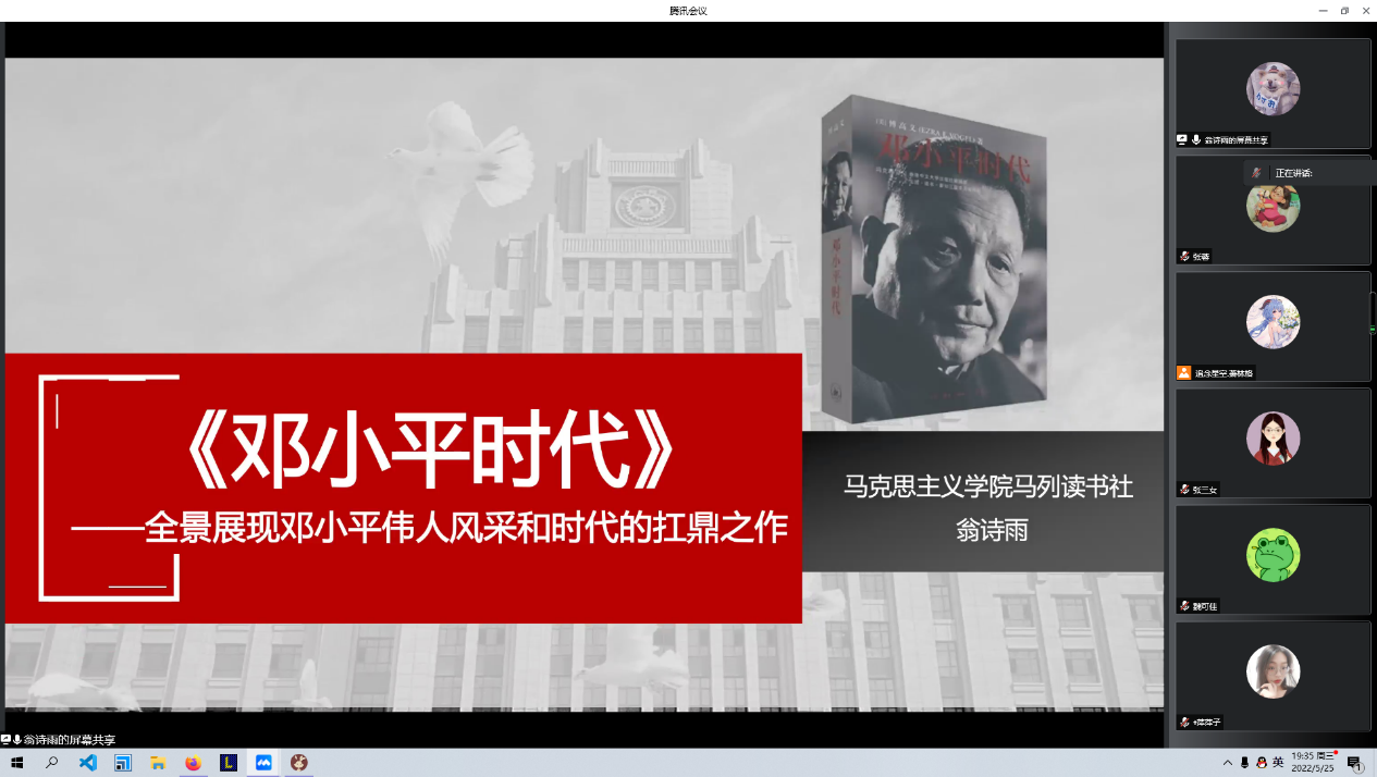 硕2020党支部组织委员孔森主持本次党史学习,马列读书社成员翁诗雨同学对《邓小平时代》进行分享。