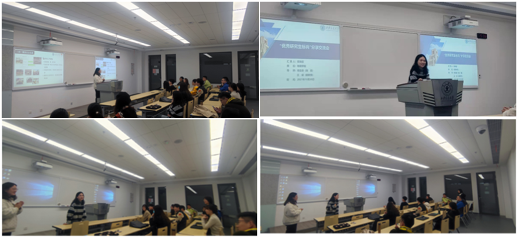 优秀博士研究生标兵蔡海蕊和优秀硕士研究生标兵裴格锐分享展示了科研工作、学术成果、社会实践等,学院研究生新生积极参加分享会。